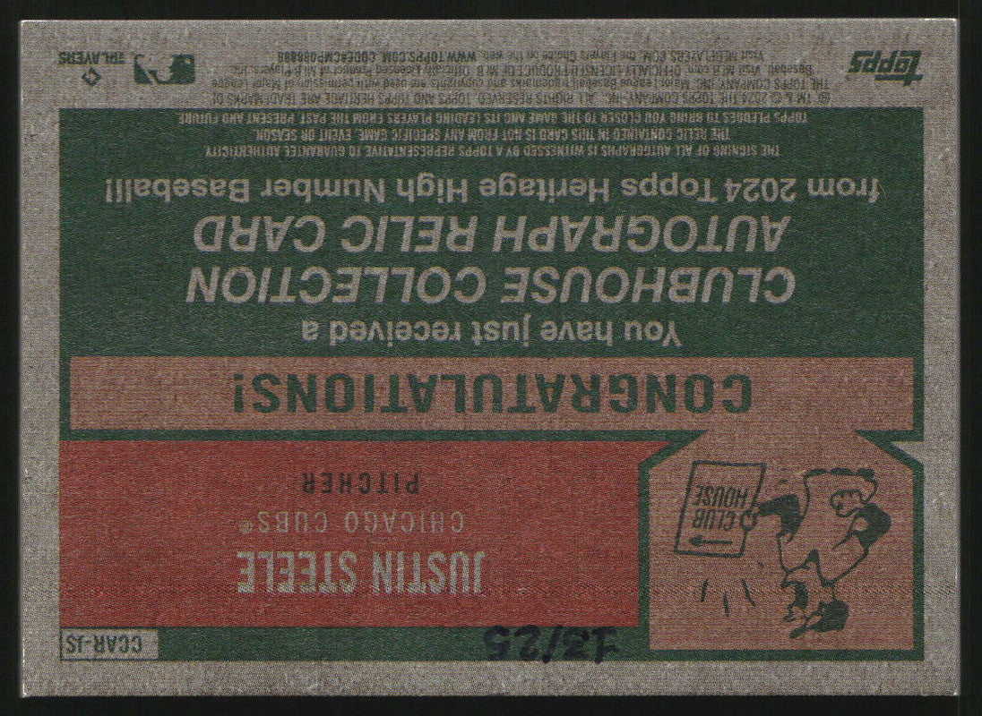 2024 Topps Heritage Clubhouse Collection Relics Justin Steele Auto /25