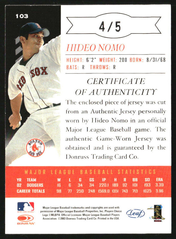 2003 Leaf Limited Threads #103 Hideo Nomo /5