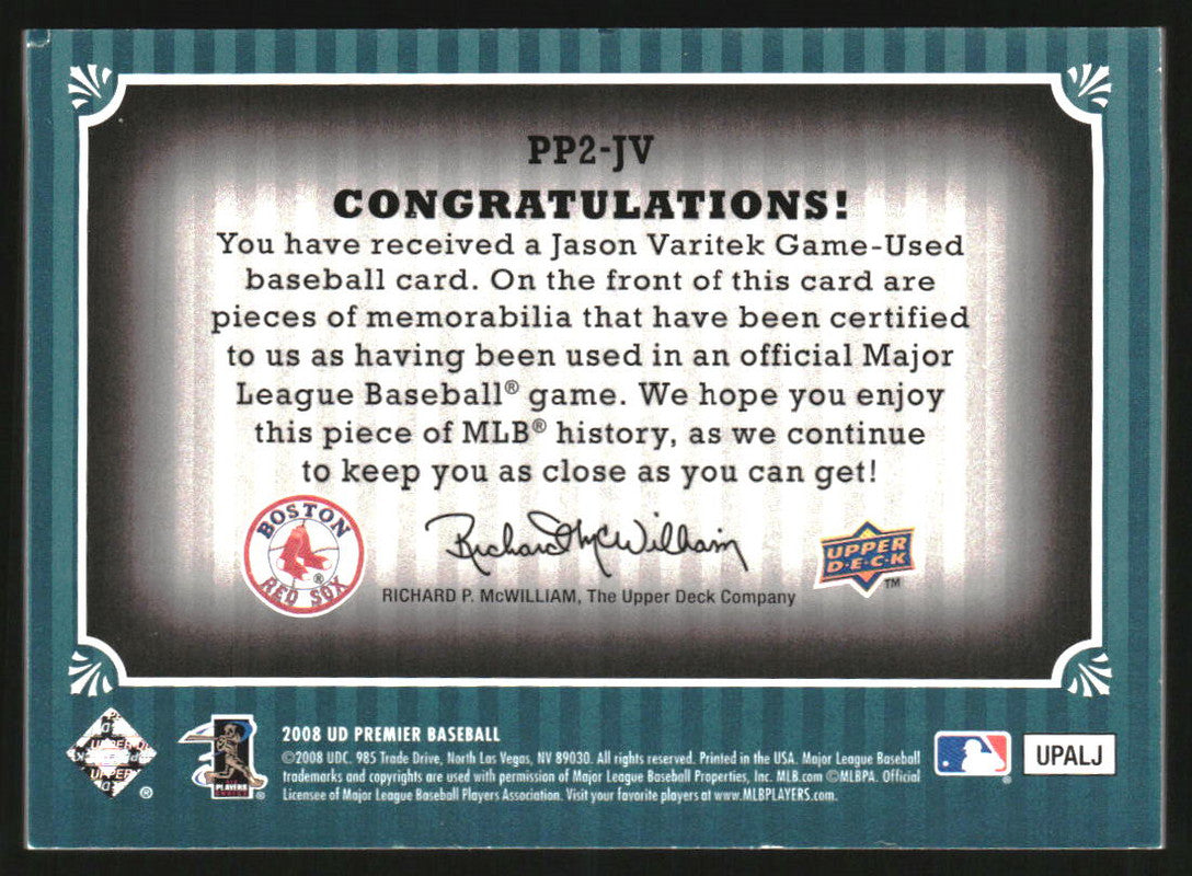 2008 Upper Deck Premier Patches Gold Milestones #PP2-JV Jason Varitek /22