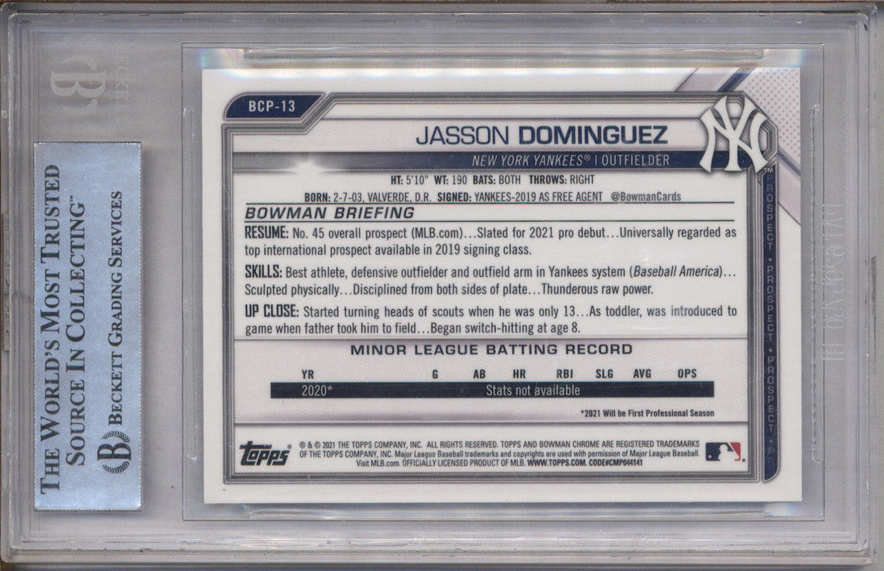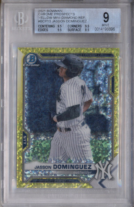 2021 Bowman Chrome Yellow Mini-Diamond Refractors Jasson Dominguez /75 BGS 9
