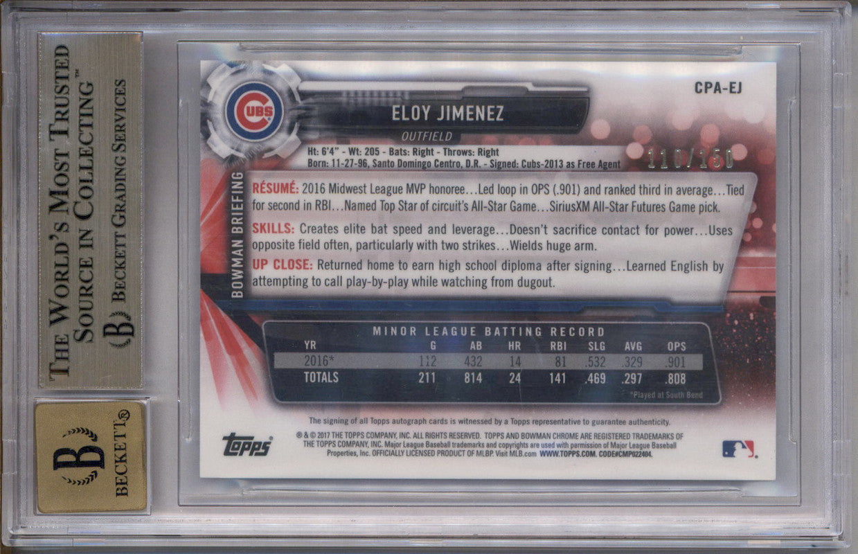 2017 Bowman Chrome Autographs Blue Refractors Eloy Jimenez Auto /150 BGS 10