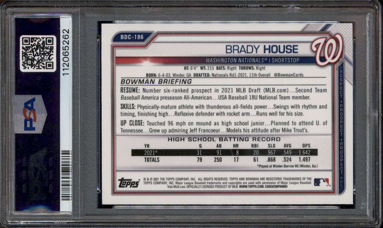 2021 Bowman Draft Chrome Sapphire #BDC186 Brady House RC PSA 10
