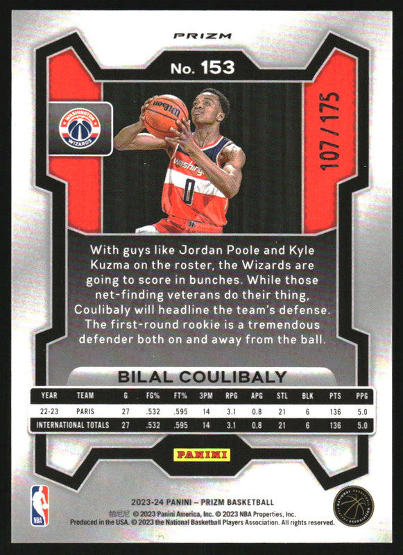 2023-24 Panini Prizm Prizms White #153 Bilal Coulibaly RC /175