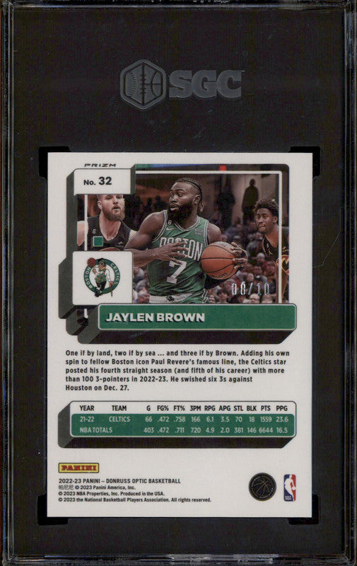 2022 Donruss Optic Gold Prizm #32 Jaylen Brown /10 SGC 9