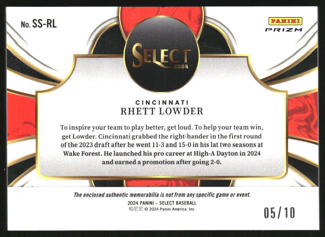 2024 Panini Select Selective Swatches Gold Prizms #SS-RL Rhett Lowder /10