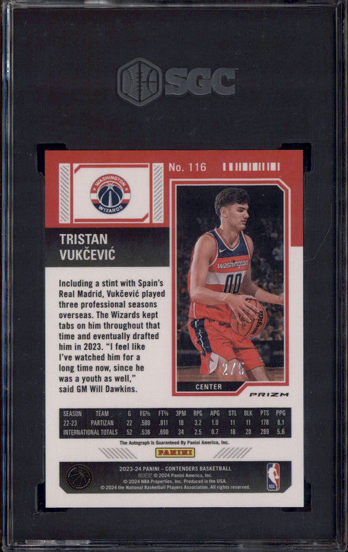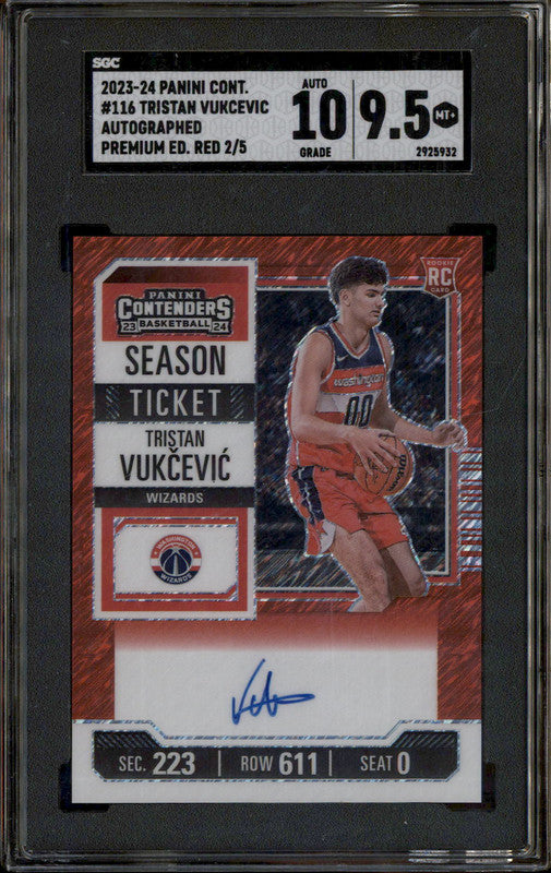 2023 Contenders Auto Premium Red Prizm #116 Tristan Vukcevic RC /5 SGC 9.5