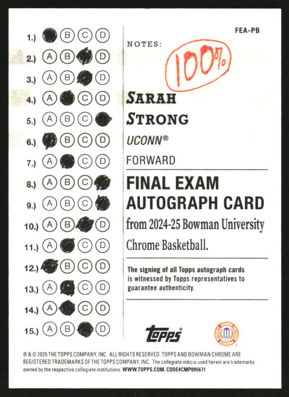 2024-25 Bowman University Chrome Final Exam Autographs #FEA-PB Sarah Strong Auto