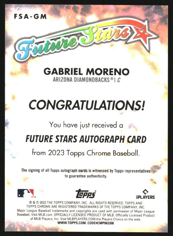 2023 Topps Chrome Logofractor Future Stars Orange Gabriel Moreno RCAuto /25