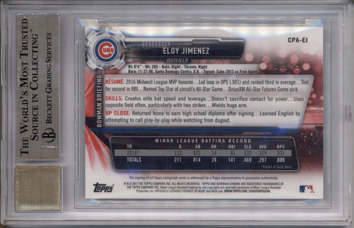 2017 Bowman Chrome Green Refractors #CPAEJ Eloy Jimenez Auto /99 BGS 9.5