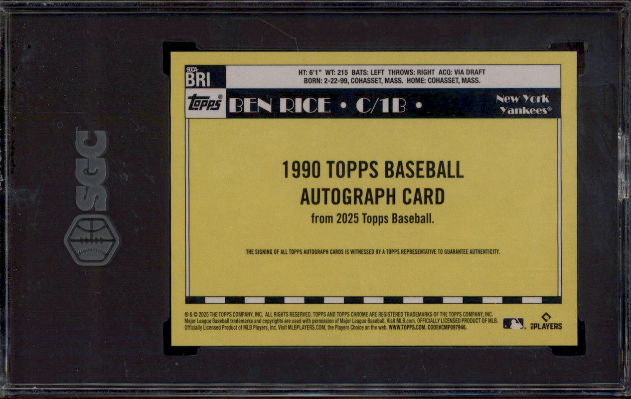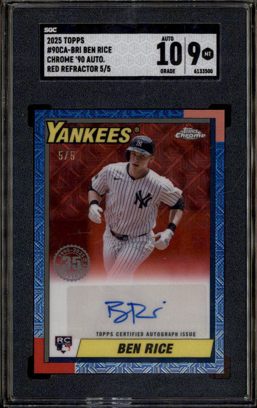 2025 Topps Chrome '90 Auto Red Refractor #90CA-BRI Ben Rice RC /5 SGC 9