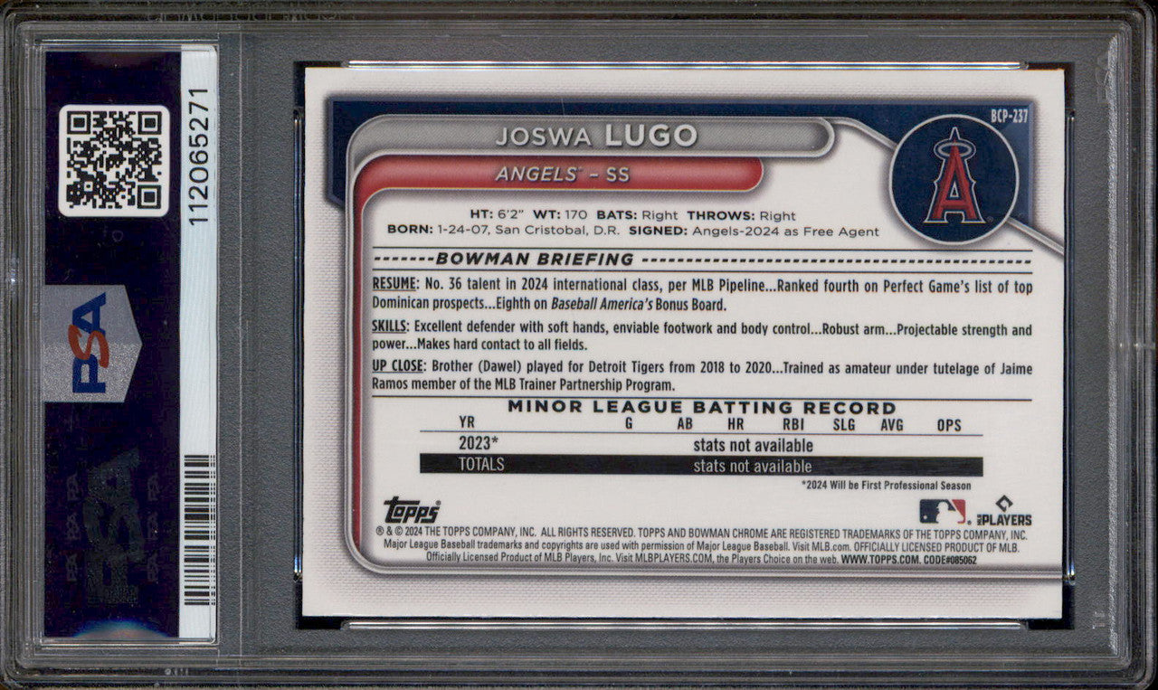 2024 Bowman Chrome Sapphire Edition Prospects #237 Joswa Lugo RC PSA 9