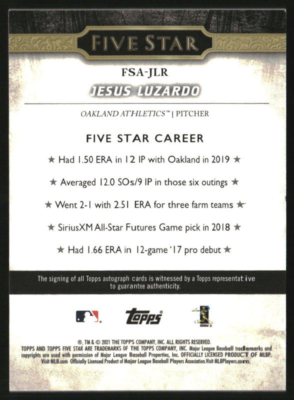 2021 Topps Five Star Orange #FSA-JLR Jesus Luzardo Auto /5