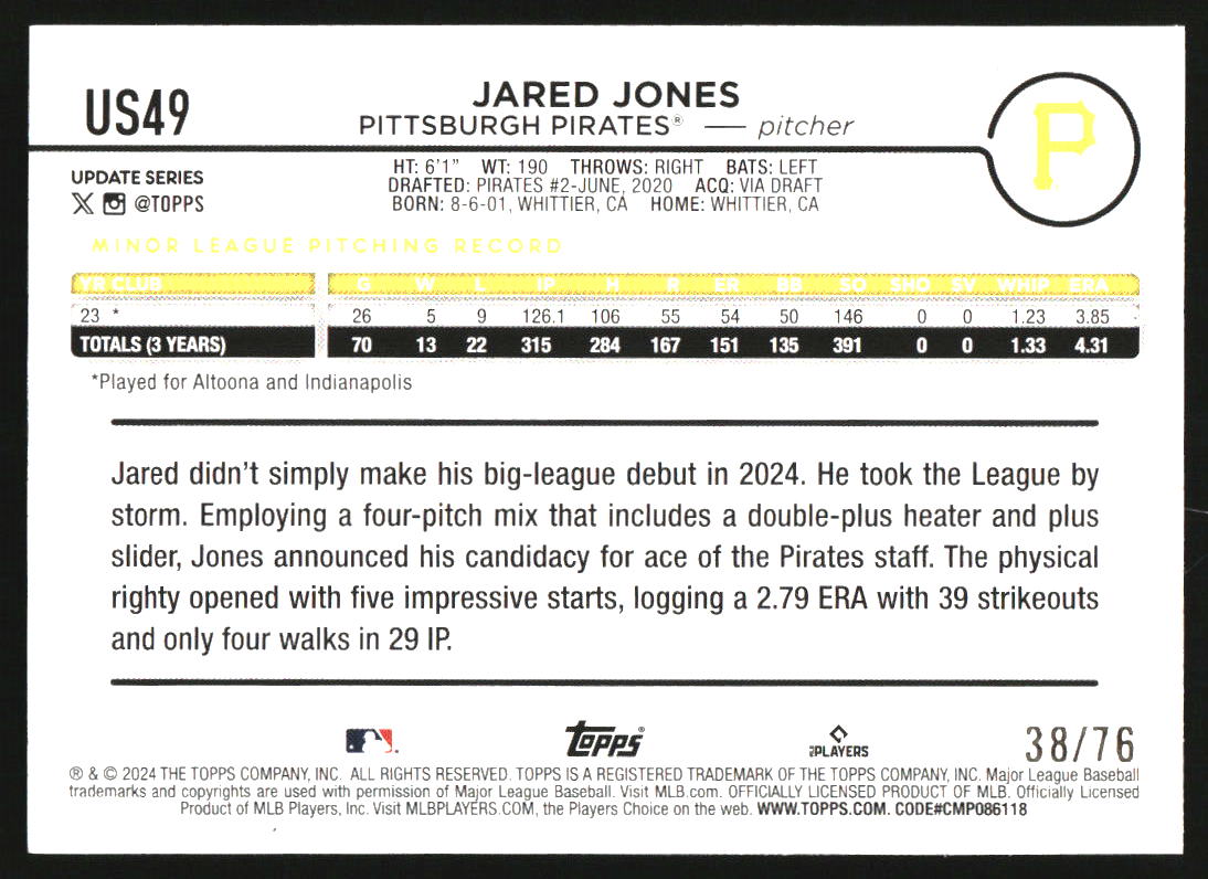 2024 Topps Update Independence Day #US49 Jared Jones RC /76