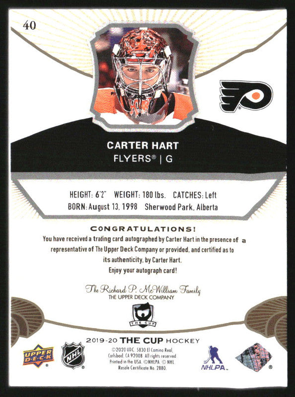 2019-20 The Cup Gold Spectrum #40 Carter Hart Autograph Auto /12