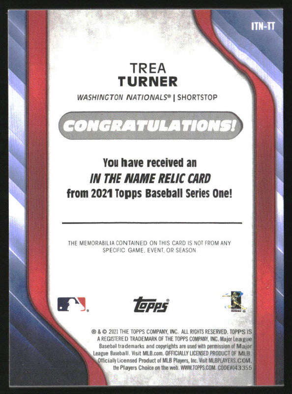 2021 Topps In the Name #ITN-TT Trea Turner 1/1