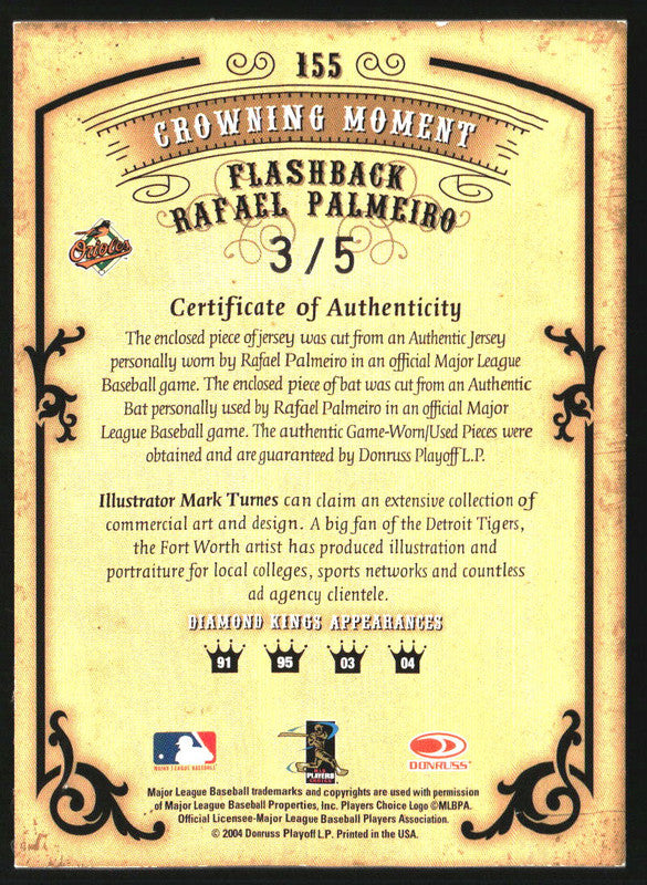 2004 Diamond Kings DK Combos Framed Platinum Grey #155 Rafael Palmeiro Auto /5