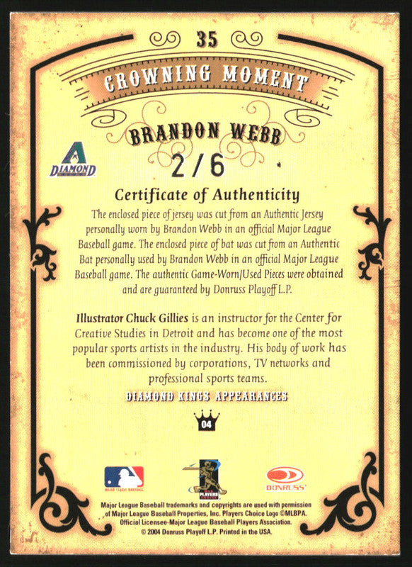 2004 Donruss Diamond Kings DK Combos Silver #35 Brandon Webb Auto /6