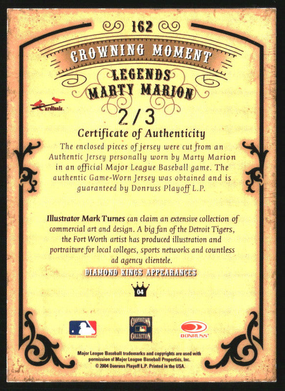 2004 Donruss Diamond Kings DK Combos Gold Sepia #162 Marty Marion /3
