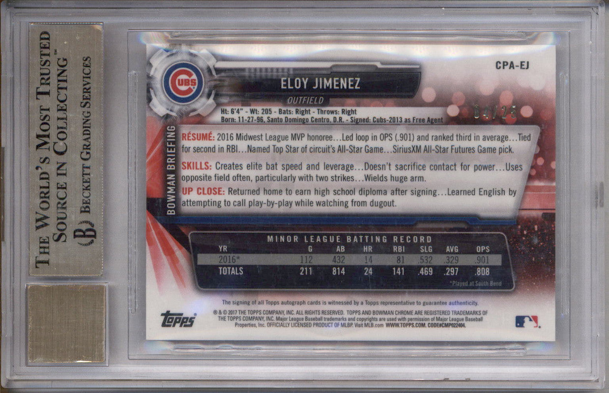 2017 Bowman Chrome Auto Orange Shimmer Refractors Eloy Jimenez /25 BGS 9.5