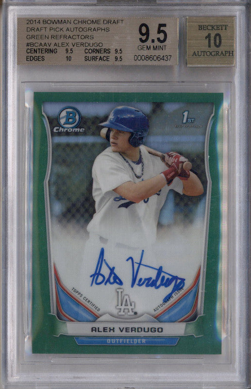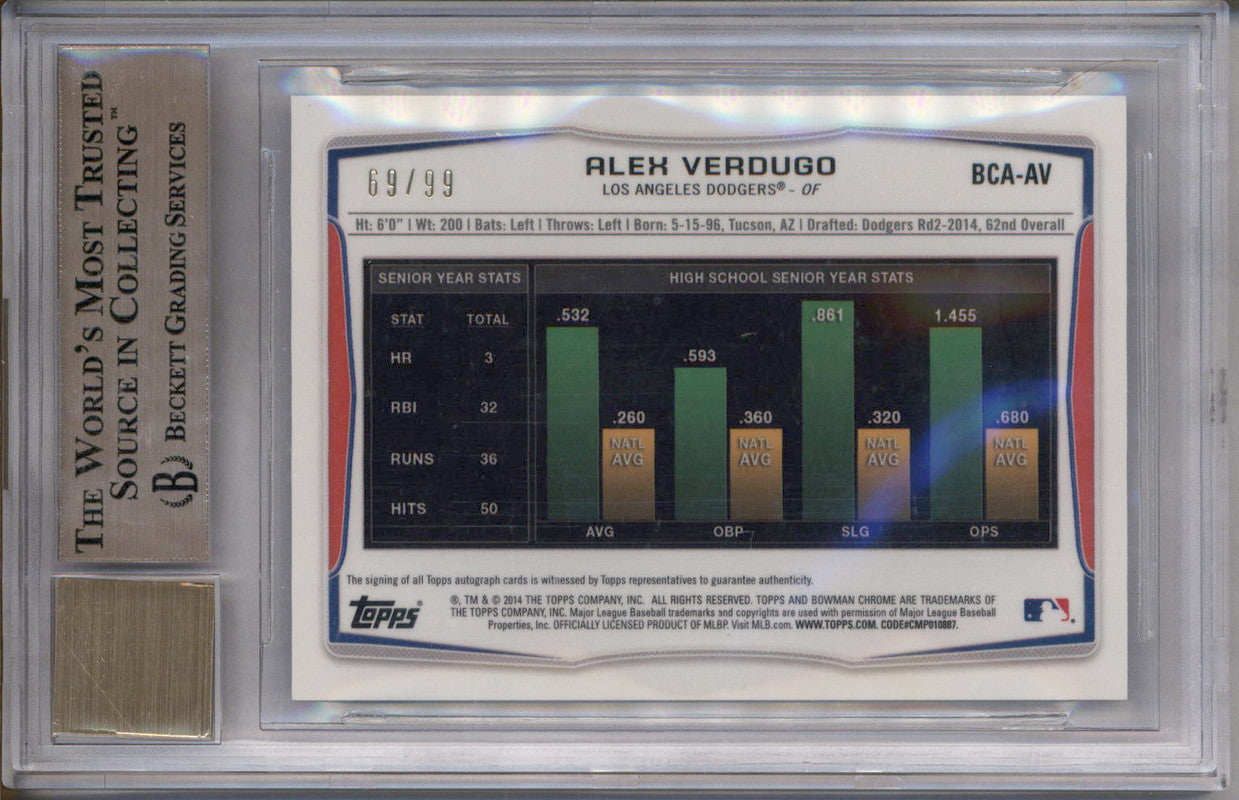 2014 Bowman Chrome Draft Auto Green Refractor #BCAAV Alex Verdugo RC /99 BGS 9.5