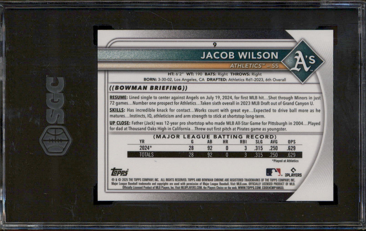 2025 Bowman Etched In Glass Variation #9 Jacob Wilson RC SGC 10