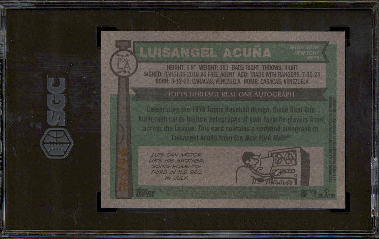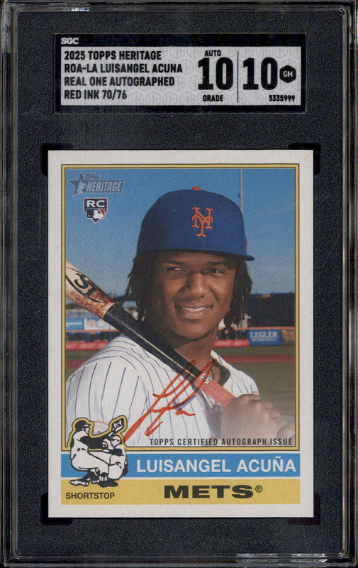 2025 Topps Heritage Real One Auto Red Ink #ROA-LA Luisangel Acuna RC /76 SGC 10