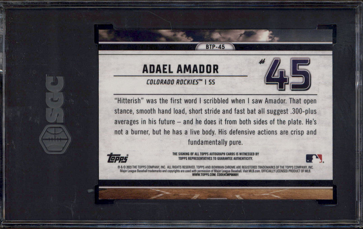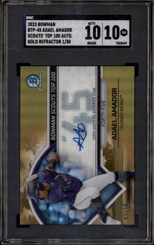 2023 Bowman Scouts Top 100 Auto Gold Refractor #BTP-45 Adael Amador /50 SGC 10