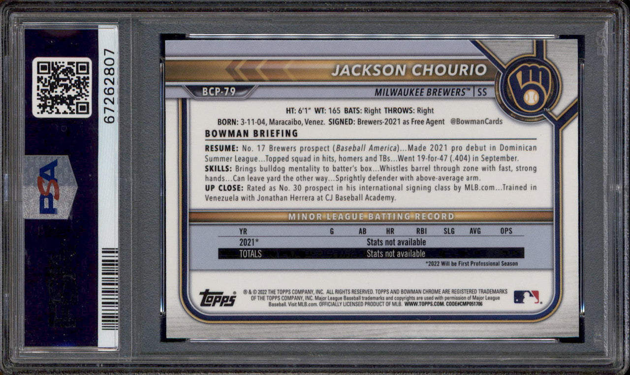 2022 Bowman Chrome Prospects #BCP79 Jackson Chourio RC PSA 8