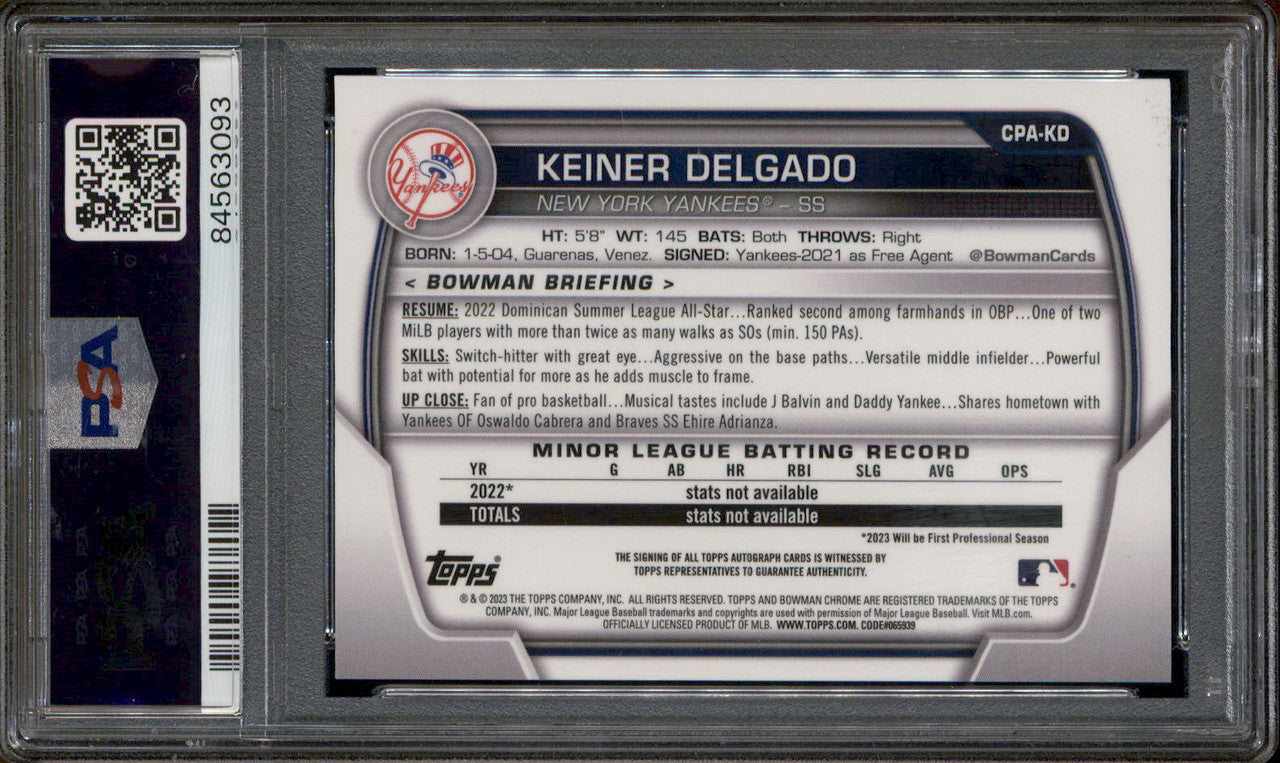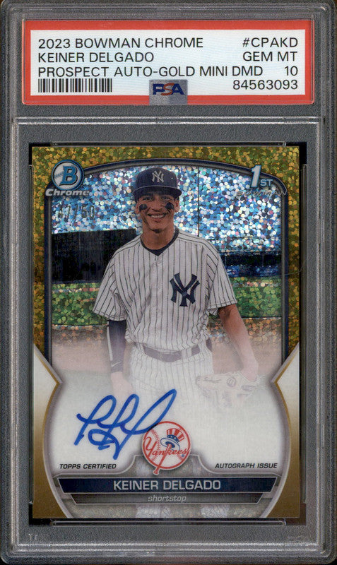 2023 Bowman Chrome Prospect Auto Gold Mini Diamond Keiner Delgado RC /50 PSA 10