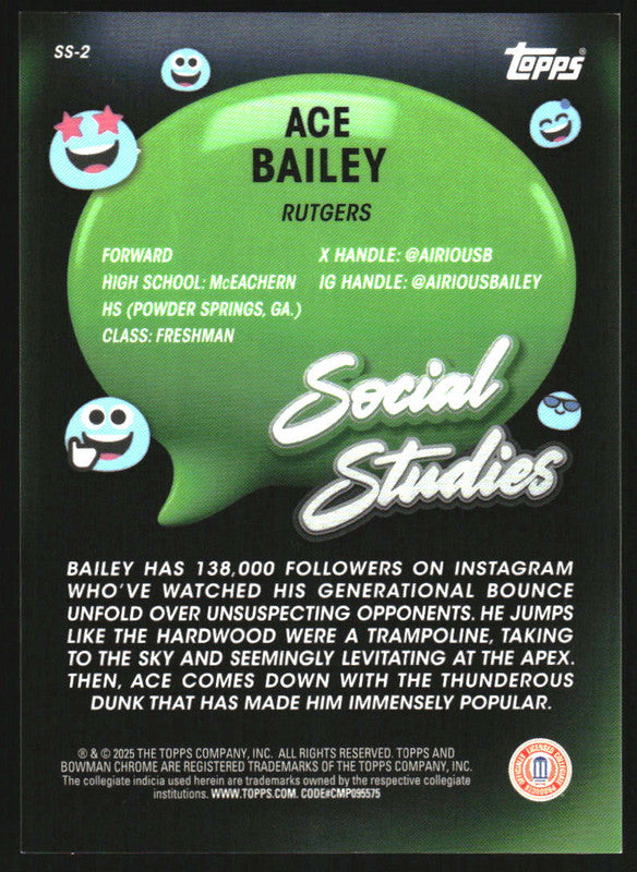 2024-25 Bowman University Social Studies Black and White Stealth Ace Bailey /48