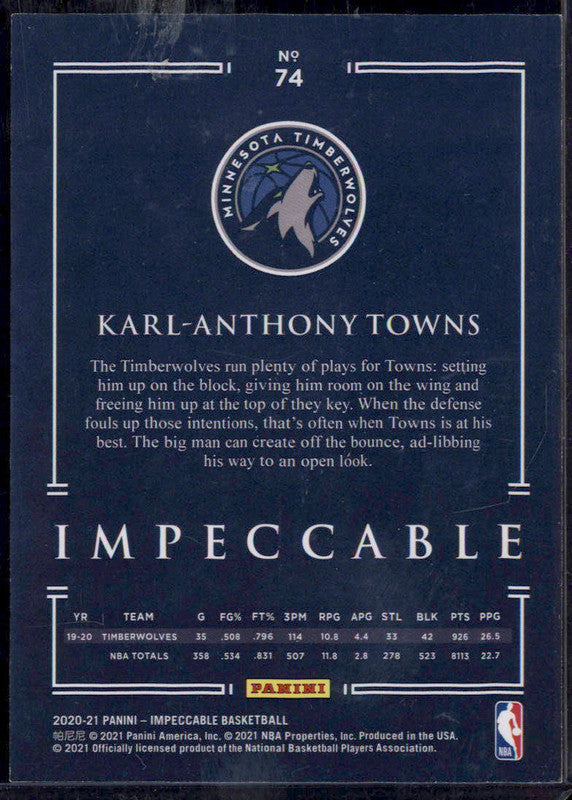 2020-21 Panini Impeccable Holo Gold #74 Karl-Anthony Towns Auto /10