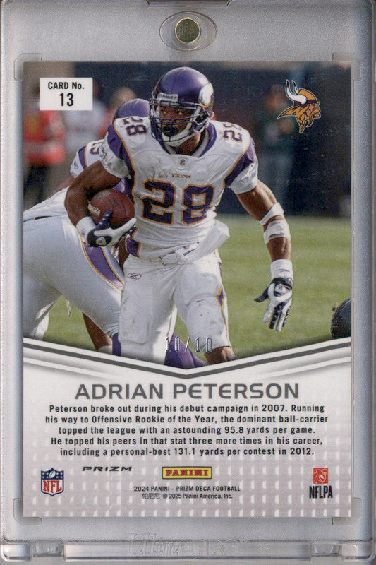 2024 Panini Prizm Deca Decade Dominance Gold Prizm #13 Adrian Peterson /10