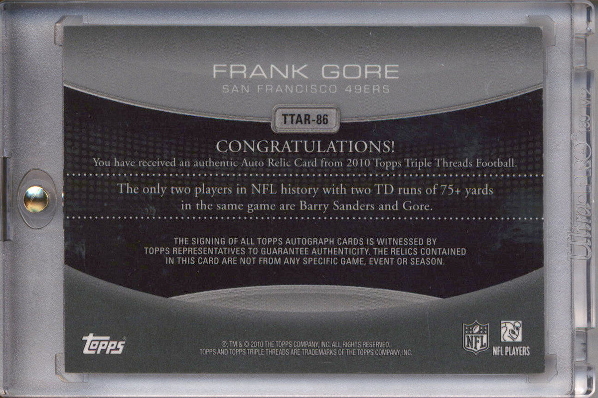 2010 Topps Triple Threads Autographed Relics 2x Pro Bowl Frank Gore Auto 1/1