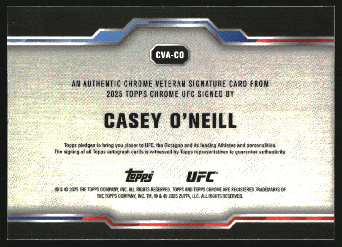 2025 Topps UFC Chrome Chrome Veteran Gold Refractor Casey O'Neill Auto /50