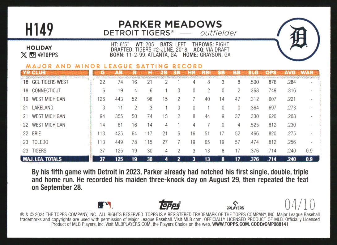 2024 Topps Holiday Red Metallic Holiday Tree #H149 Parker Meadows /10