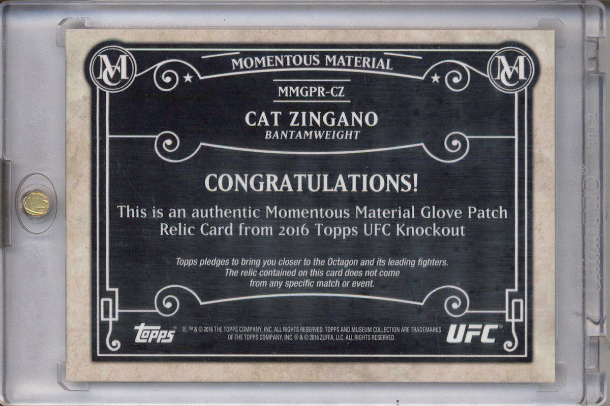 2016 Topps UFC Knockout Momentous Material Glove Patch Relics Cat Zingano 1/1
