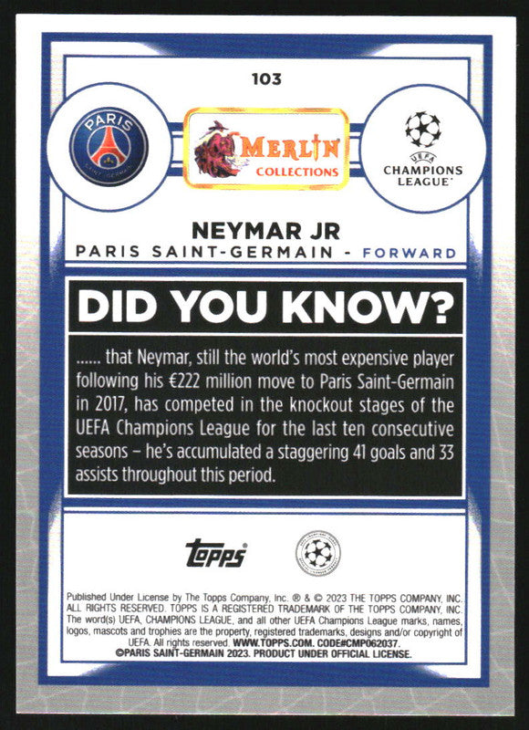 2022-23 Topps Merlin UEFA Gold Atomic Refractors #103 Neymar Jr /50