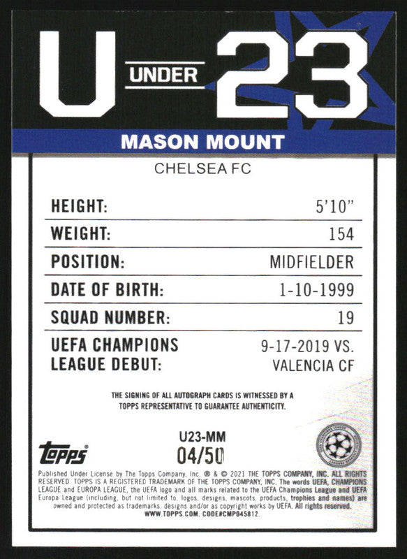 2020-21 Merlin UEFA Champions League U23 Stars Gold Mason Mount /50