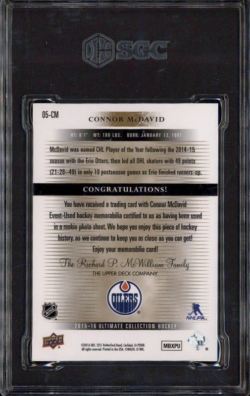 2015 Ultimate Collection '05 Rookies Material Connor McDavid /125 SGC 9