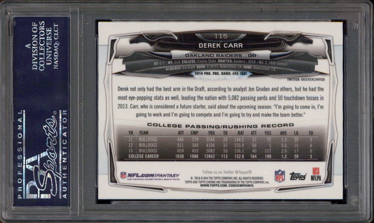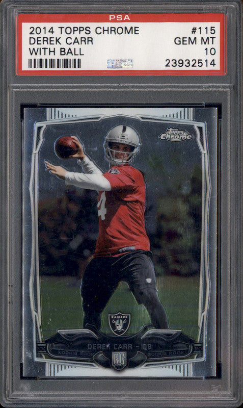 2014 Topps Chrome #115 Derek Carr With Ball RC Rookie PSA 10