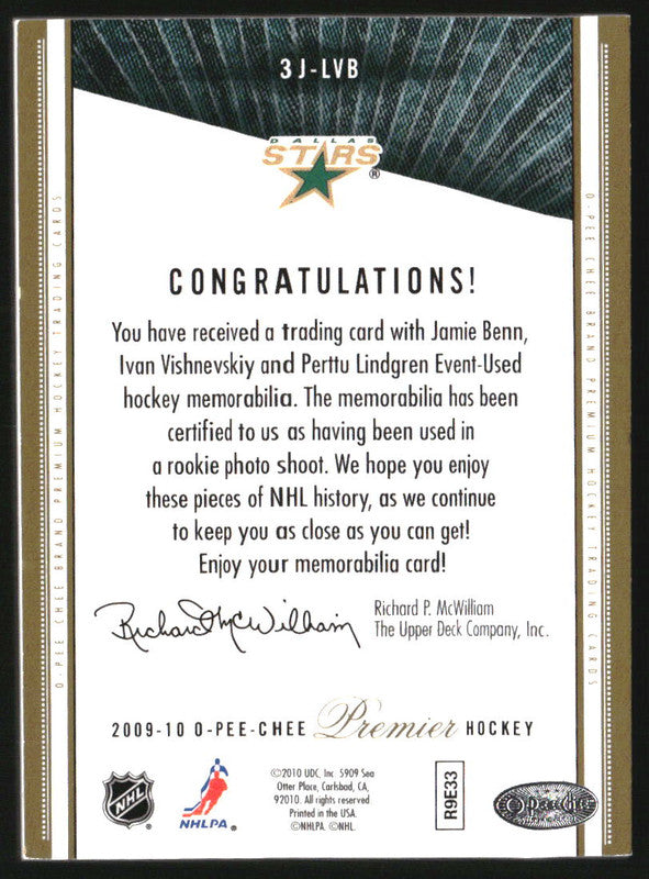 2009-10 O-Pee-Chee Triple Jersey Lindgren Vishnevskiy Benn /15