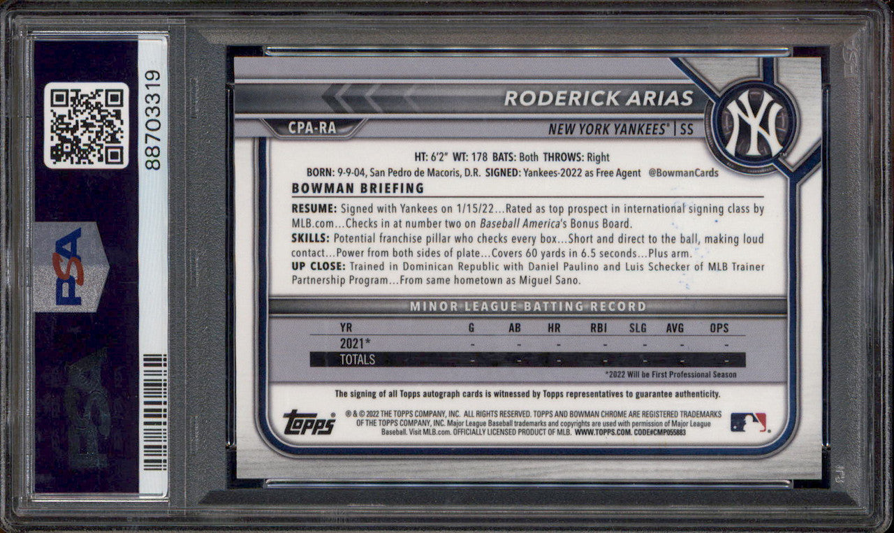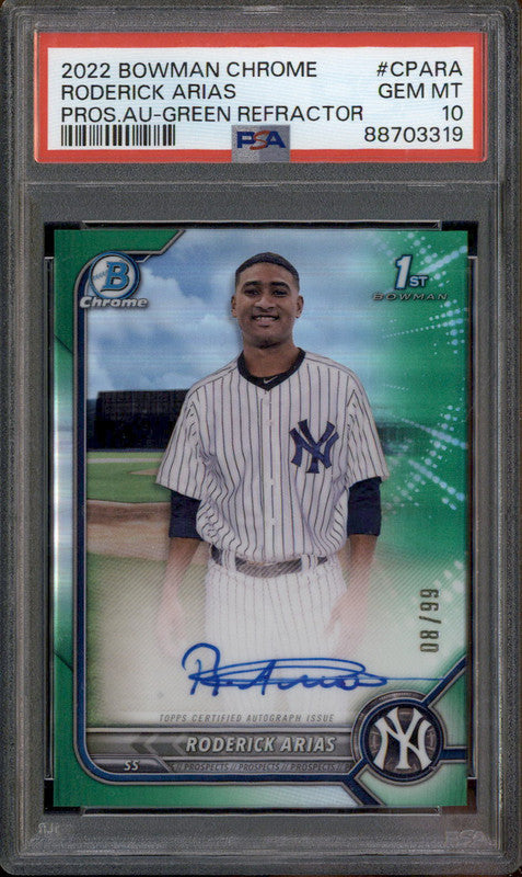 2022 Bowman Chrome Prospect Auto Green Refractor Roderick Arias RC /99 PSA 10