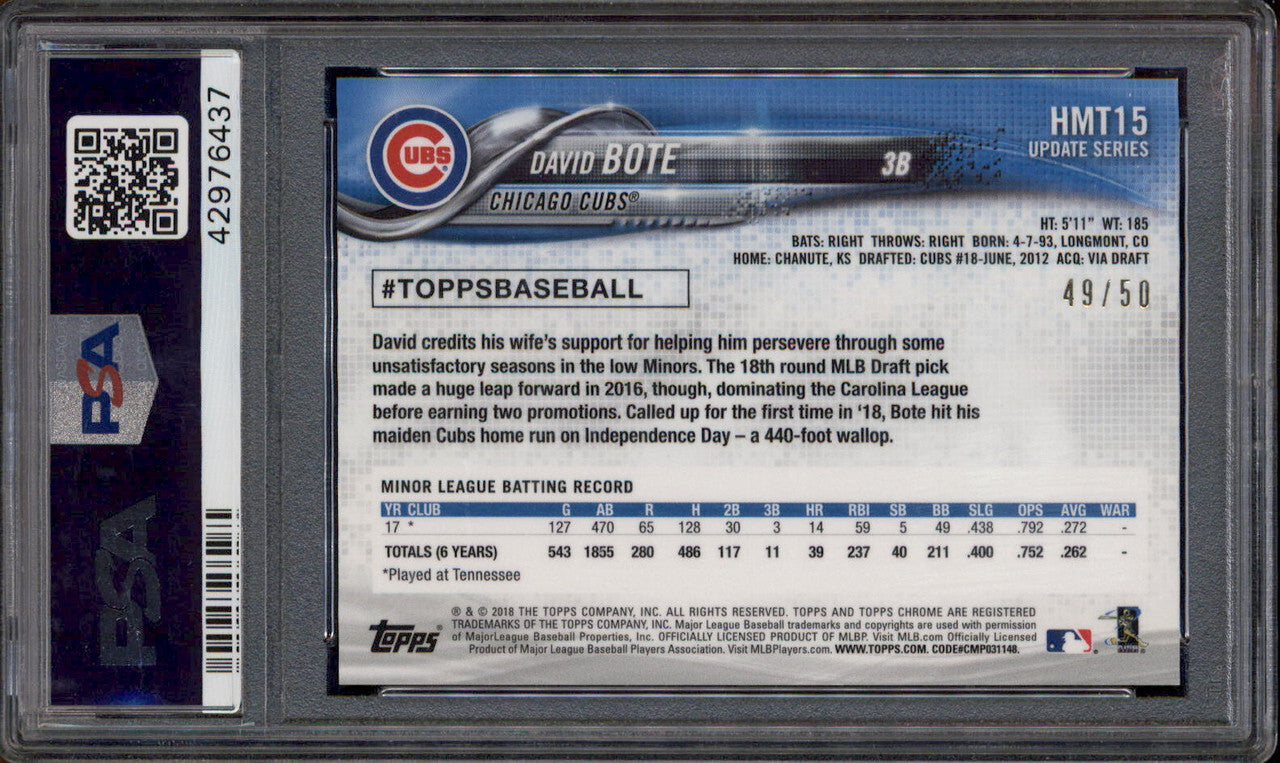 2018 Topps Chrome Update Gold Refractor #HMT15 David Bote RC /50 PSA 10