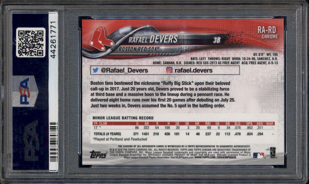 2018 Topps Chrome Rookie Autograph #RA-RD Rafael Devers RC Auto PSA 10