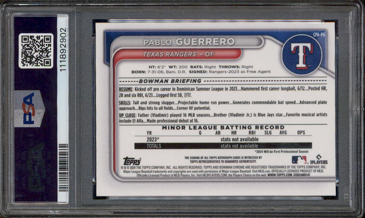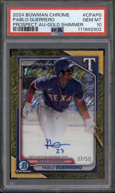 2024 Bowman Chrome Prospect Auto Gold Shimmer Pablo Guerrero RC /50 PSA 10