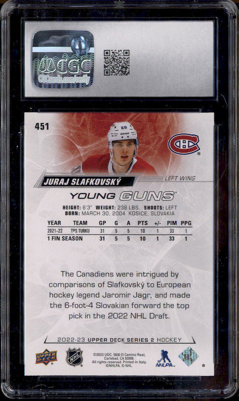 2022-23 Upper Deck #451 Juraj Slafkovsky Young Guns RC Rookie CGC 10