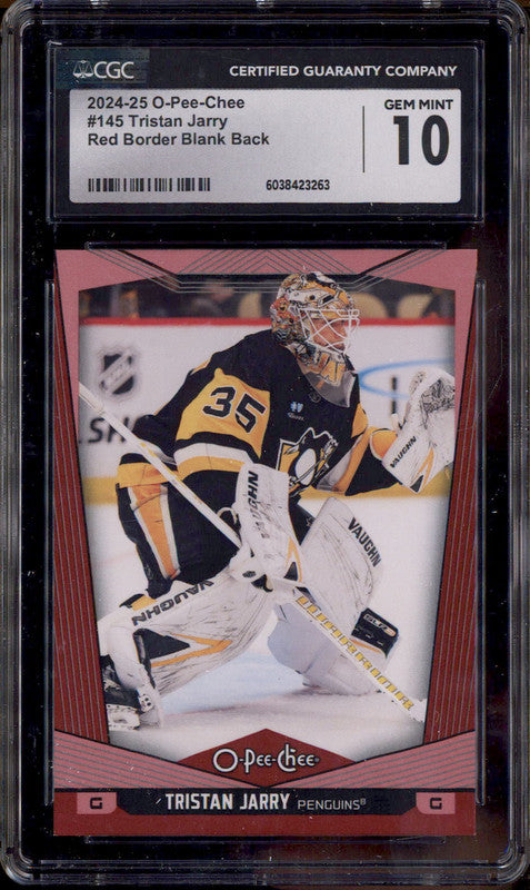 2024 OPC Red Border Blank Back #145 Tristan Jarry 1/1 CGC 10