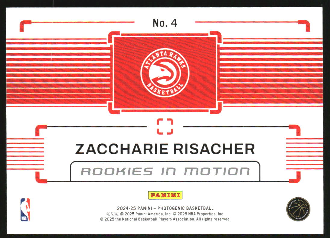 2024-25 Panini Photogenic Rookies In Motion Lava #4 Zaccharie Risacher /15