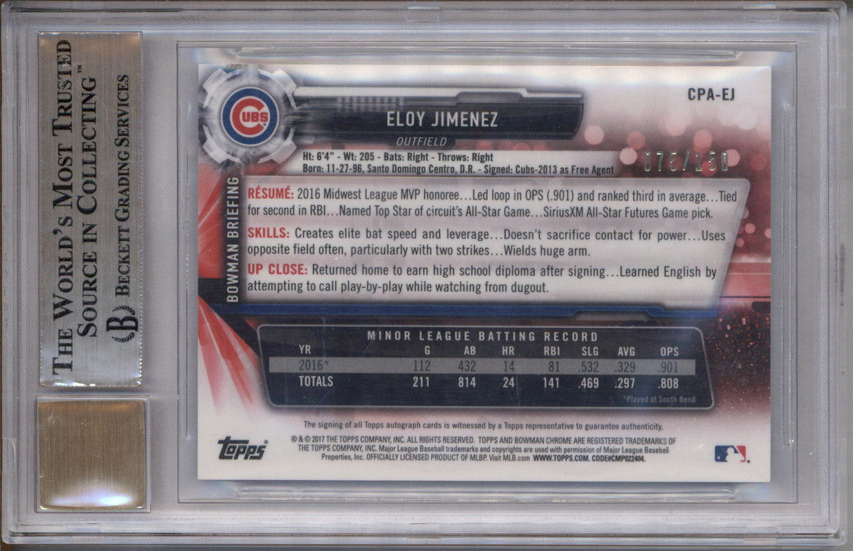 2017 Bowman Chrome Prospect Auto Blue Refractor #CPAEJ Eloy Jimenez /150 BGS 9.5