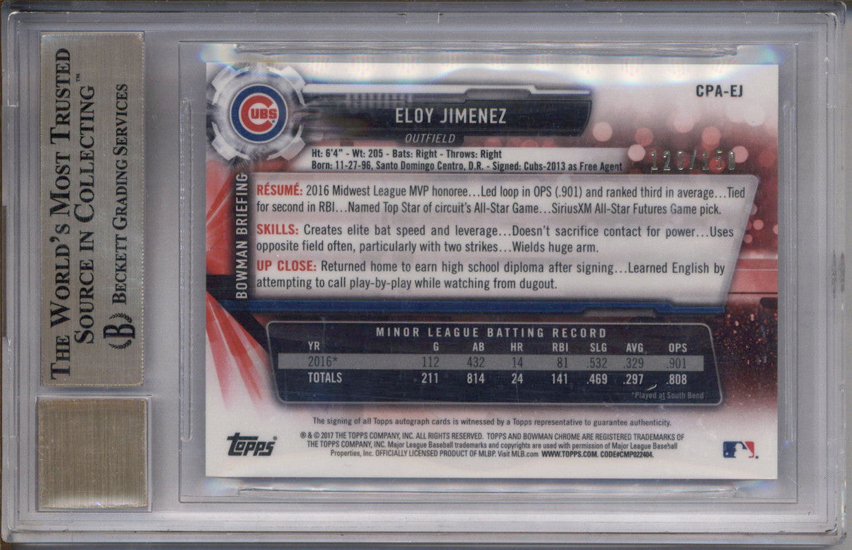 2017 Bowman Chrome Prospect Auto Blue Refractor #CPAEJ Eloy Jimenez /150 BGS 9.5